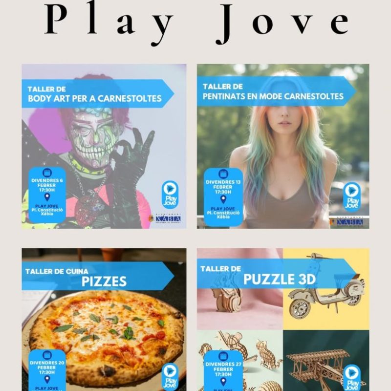 Al febrer gaudix dels tallers gratuïts de PlayJove. Vine als nostres tallers de Body Art i pentinats per a carnestoltes, aprén a fer pizzes amb nosaltres i atreveix-te a crear els teus puzles en 3D.